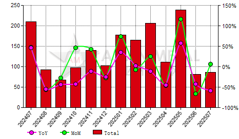 South Korea's ferro-molybdenum export volume declined 29.55% MoM in Jun 2025