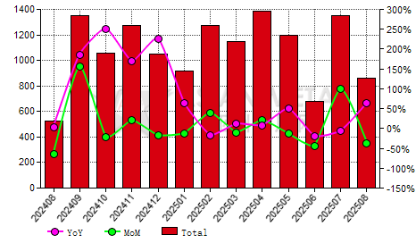 India's fused alumina import volume grew 16.49% MoM in Aug 2025