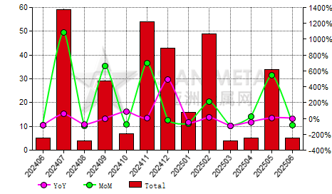 Brazil's fused alumina import volume grew 118.46% MoM in Jun 2025
