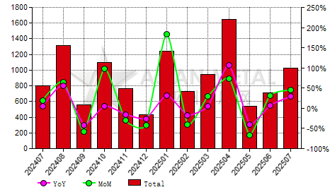 China's stainless strip export volume fell 16.80% MoM in Jun 2025