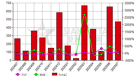 China's unwrought titanium export volume decreased 47.33% YoY in Jun 2025