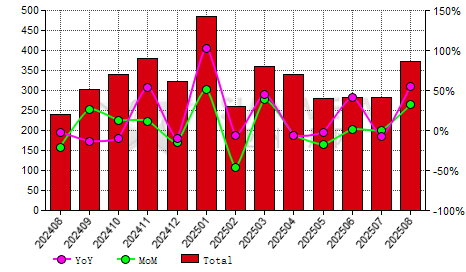 South Korea's refined zinc (Zn≥99.99%) export volume grew 34.54% YoY in Aug 2025